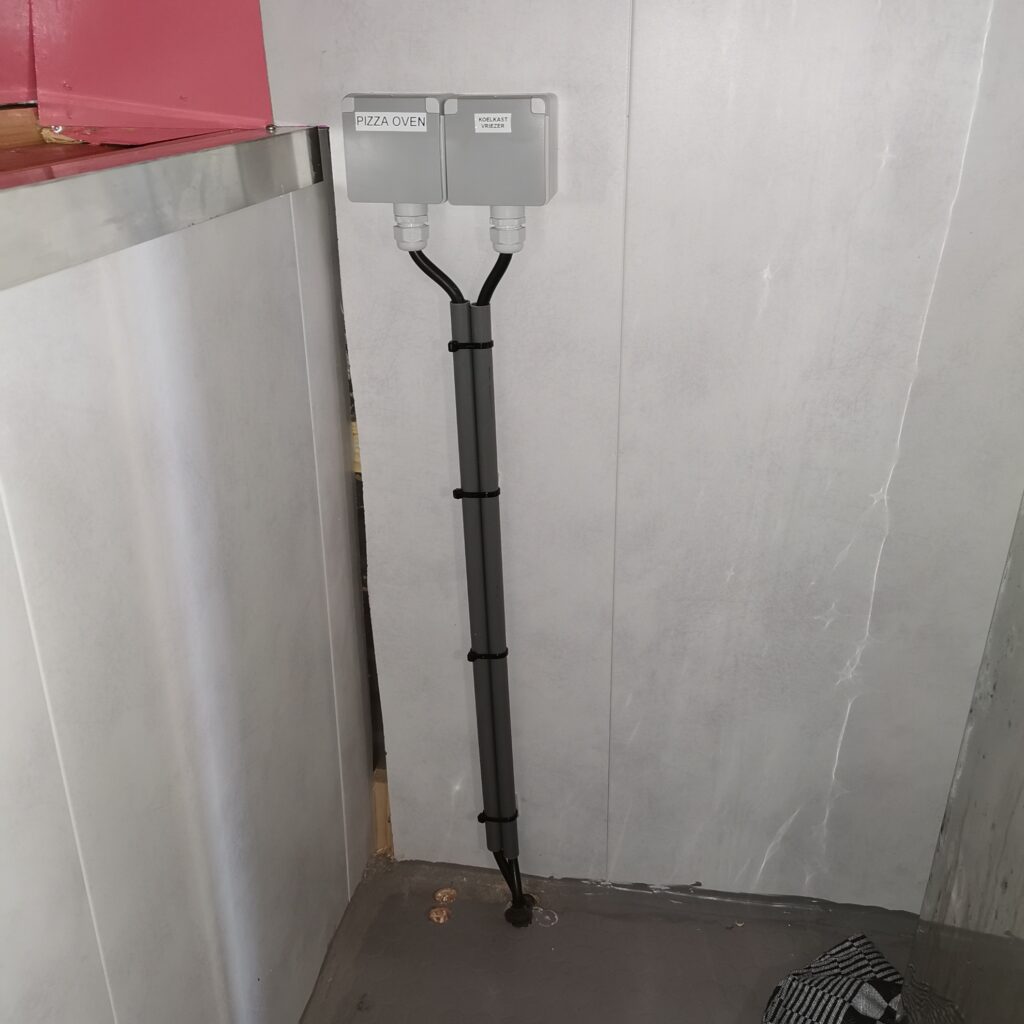 De wens van de opdrachtgever was om een wandcontactdoos buiten te hebben. Ook was de wens om het zo te