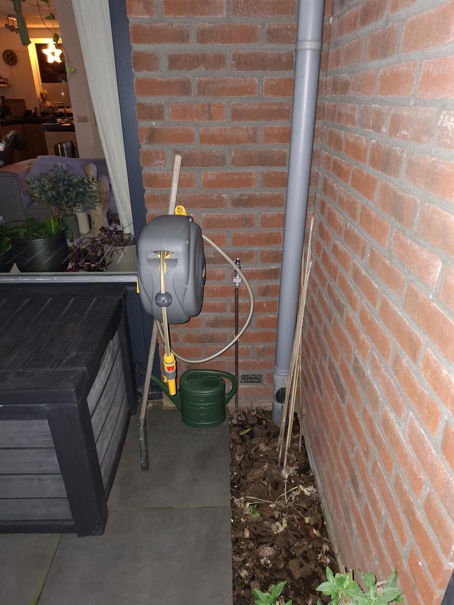 De wens van de opdrachtgever was om een wandcontactdoos buiten te hebben. Ook was de wens om het zo te maken dat ze in de toekomst vanaf het zelfde punt de rest van de tuin kan voorzien van stroompunten. Wij hebben hiervoor een aparte kabel naar de meterkast gelegd, een lasdoos en een 2voudige wandcontactdoos gemonteerd. Hiermee hebben wij alle voorzieningen getroffen voor de toekomst en voor de huidig wens van de wandcontactdoos buiten.