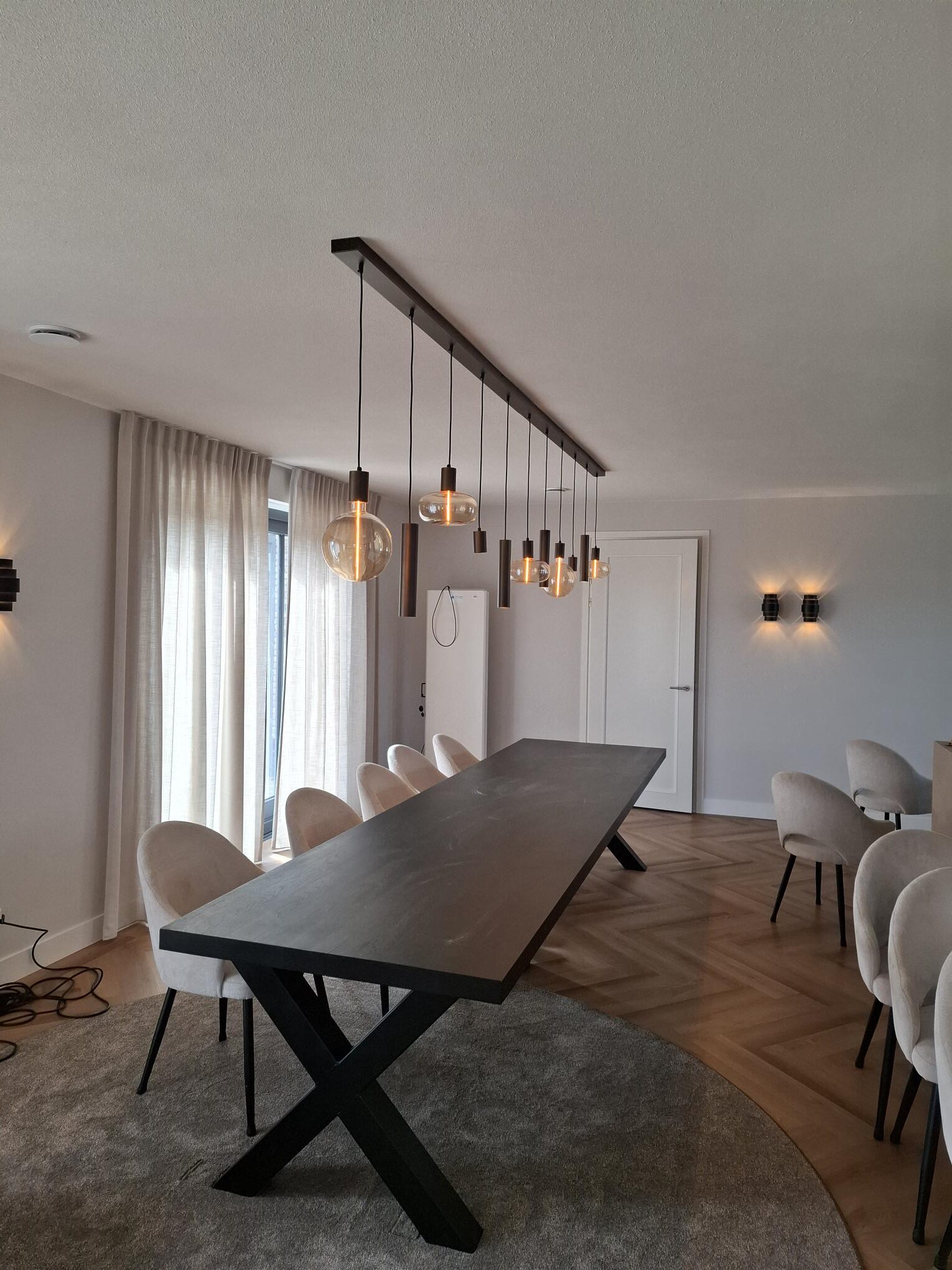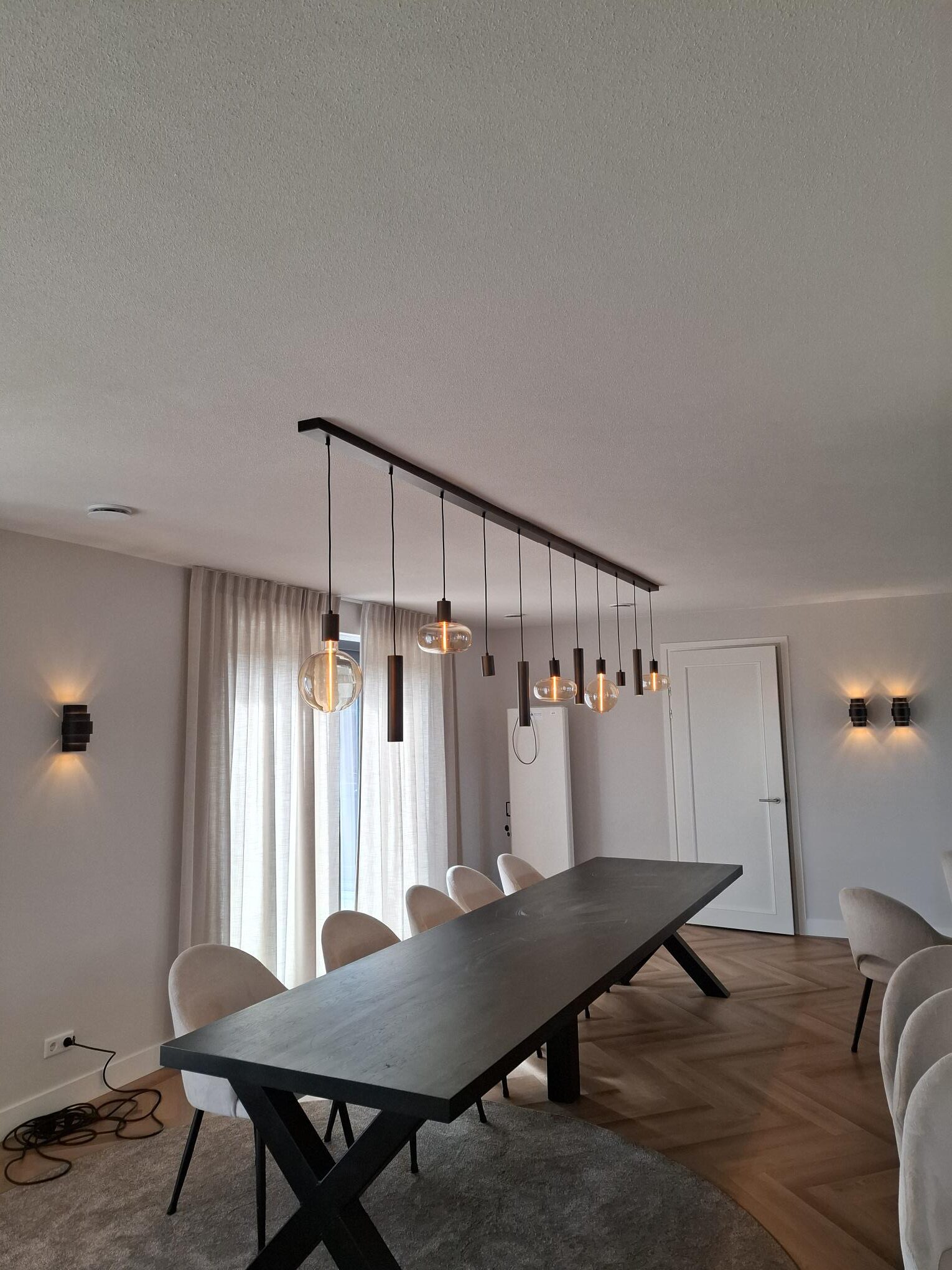 De opdrachtgever had een designarmatuur gekocht maar kreeg hem niet recht opgehangen. Hierbij hebben wij de opdrachtgever geholpen de armatuur recht op te hangen. Gezien de lengte van het armatuur was dit een beste uitdading maar het is gelukt.