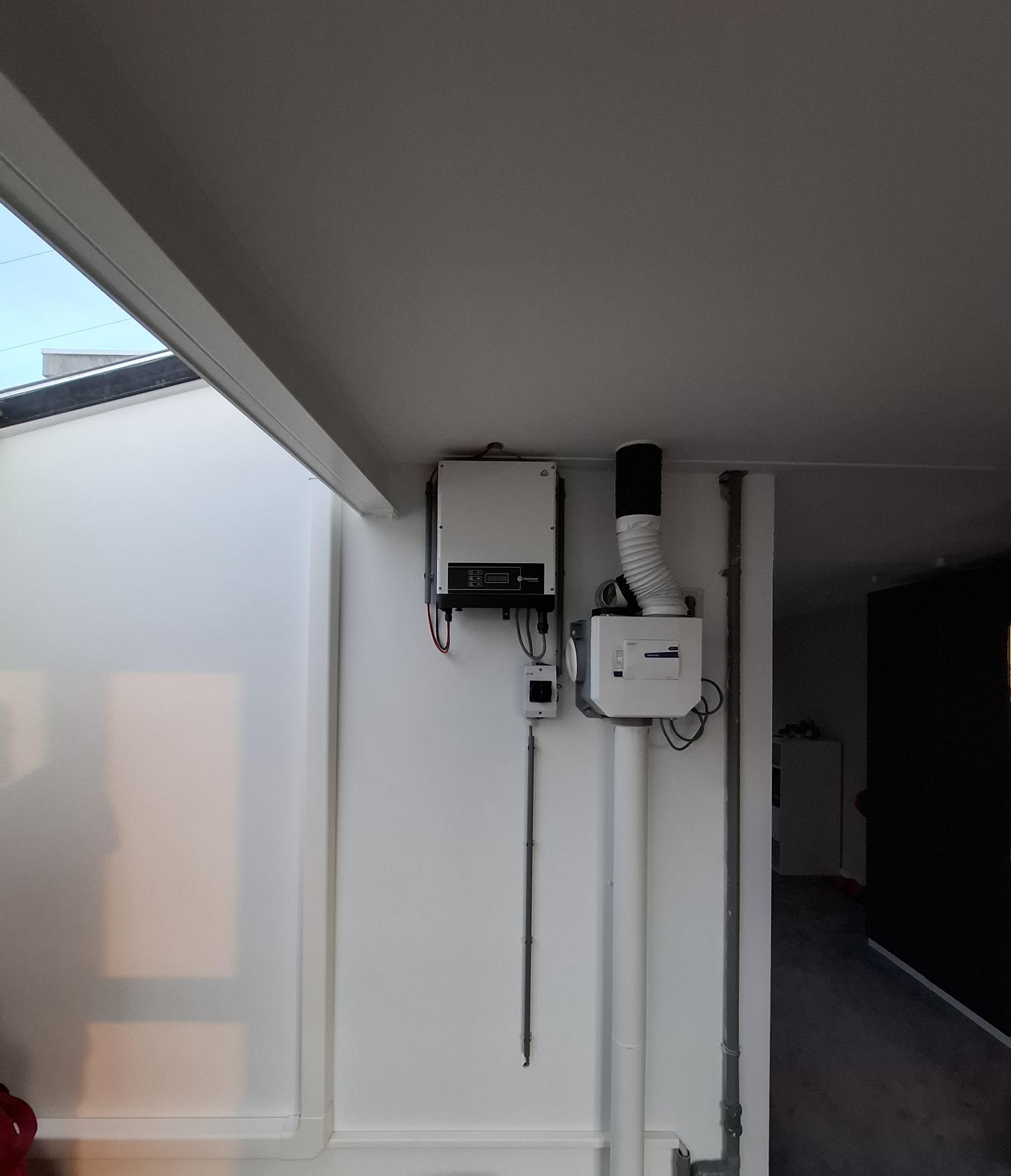 Voor de opdrachtgever was het genootzaak om de zonnepanelen weer werkt te krijgen na zijn verbouwing op zolder. De vorige installateur had zijn werk niet goed achter gelaten. Zo miste we onderdelen van de omvormer en kwam via de kabels water naar binnen. Wij hebben de lekkage opgelost door de kabels via een dak doorvoer te laten lopen en de gemaakte gat af te dichten. Naast het verhelpen van de lekkage hebben we de omvormer weer netje opgehangen en aangesloten.