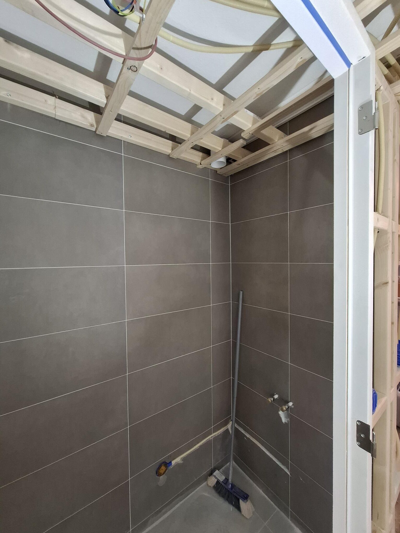 De opdrachtgever had zijn woning al opgedeeld in meerdere units. Om van deze units naar appartementen te gaan moeten de units voorzien zijn van een eigen voordeur. Om de eigen voordeur te maken moest hij op de 2e etage een voordeur gaan plaatsten. Gezien dat de ruimte er niet was om alleen een voordeur te plaatsten is de badkamer op gedeeld in de gang, wc en badkamer. Hier zijn een aantal foto’s van dit traject.